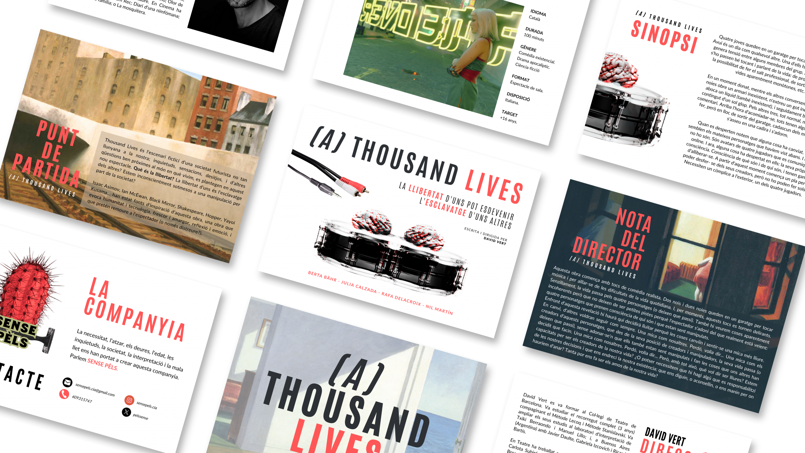 (A) Thousand Lives és l’escenari fictici d’una societat futurista no tan llunyana a la nostra; inquietuds, sensacions, qüestions ben pròximes al món en el que vivim es plantegen en aquest nou espectacle. Què és la llibertat? És la llibertat d’uns l’esclavatge dels altres? Estem inconscientment sotmesos a una manipulació per part de la societat?